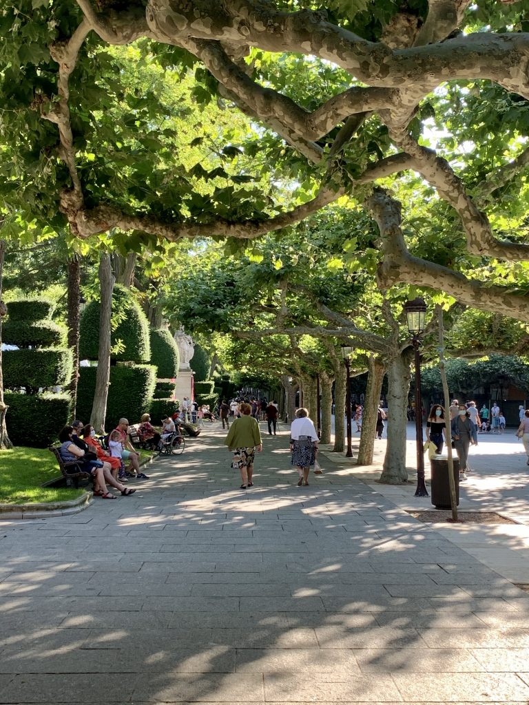 Na námestí Plaza del Cid sa nachádza aj miestne divadlo, pri ktorom začína promenáda, ktorá ponúka príjemnú prechádzku. Lemujú ju zástupy stromov, ktoré akoby sa držali za ruky, pretože ich vetvy sú navzájom zrastené. Práve táto skutočnosť zabezpečuje promenáde príjemný tieň. Miestni túto časť mesta nazývajú aj el salón, teda obývačka. V čase našej návštevy sa tu konal trh, okrem toho na promenáde nájdete kopu kaviarní s terasami. Práve tu sme si dali raňajky v príjemnej kaviarni Café Ibáñez Chocolatería. Objednajte si chocolate con churros či cruasán a la plancha. Typickým sladkým jedlom je aj leche frita alebo torrijas. Na konci promenády vás čaká už spomínaná brána a most Santa María.