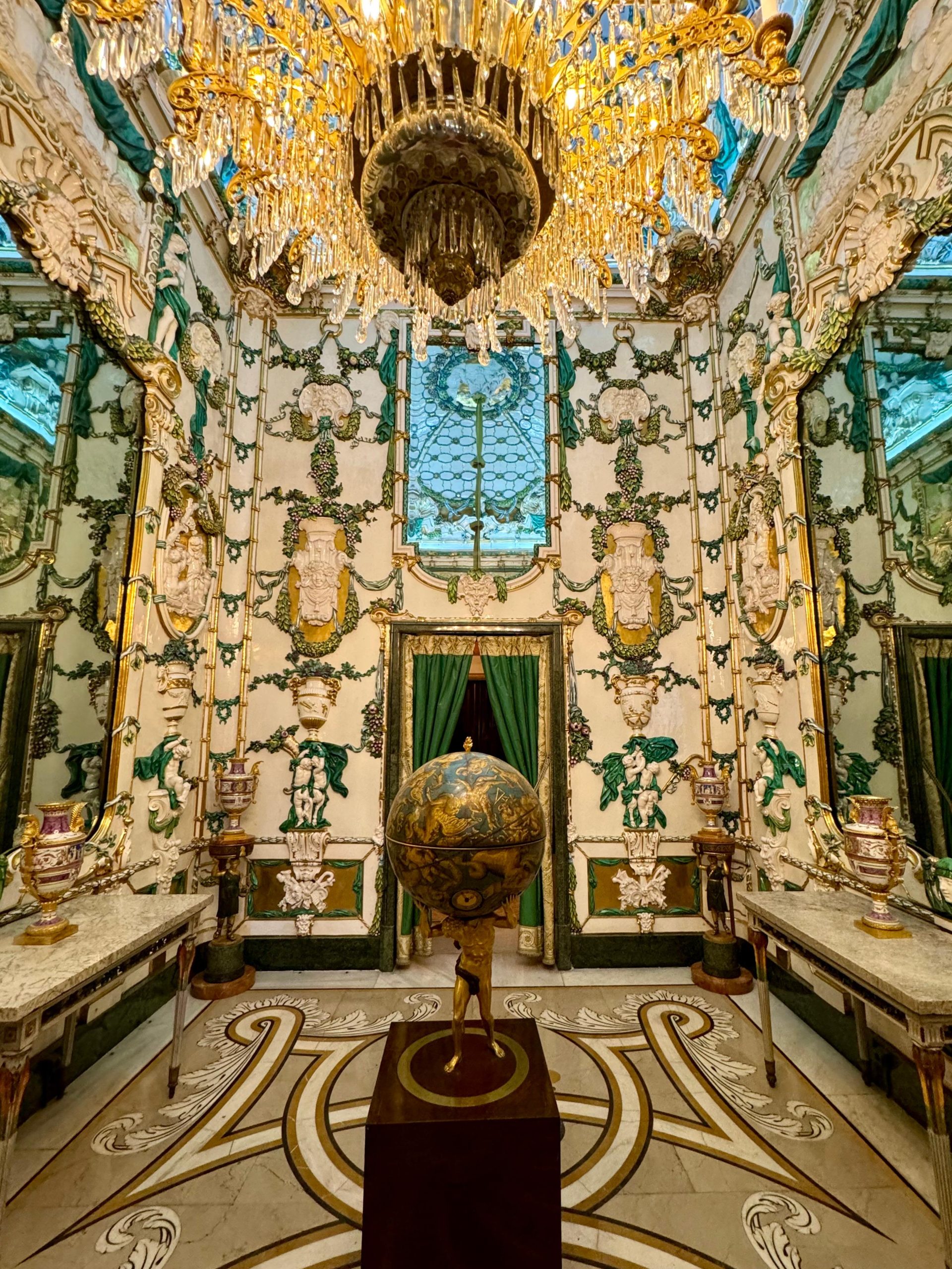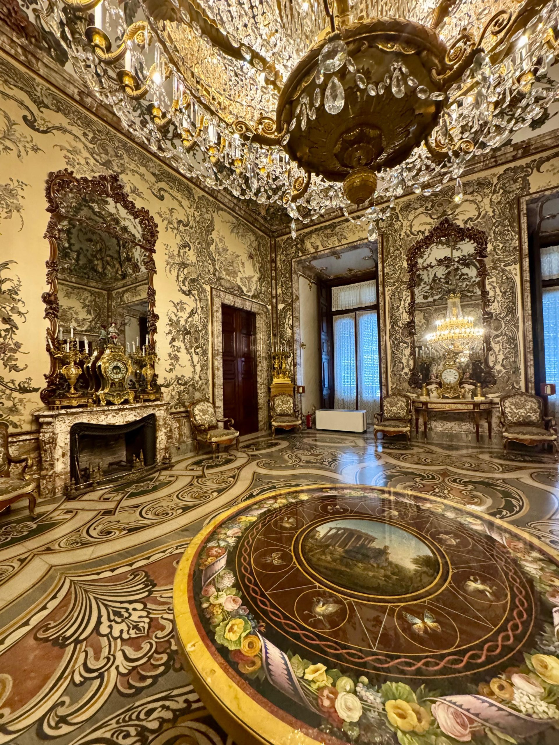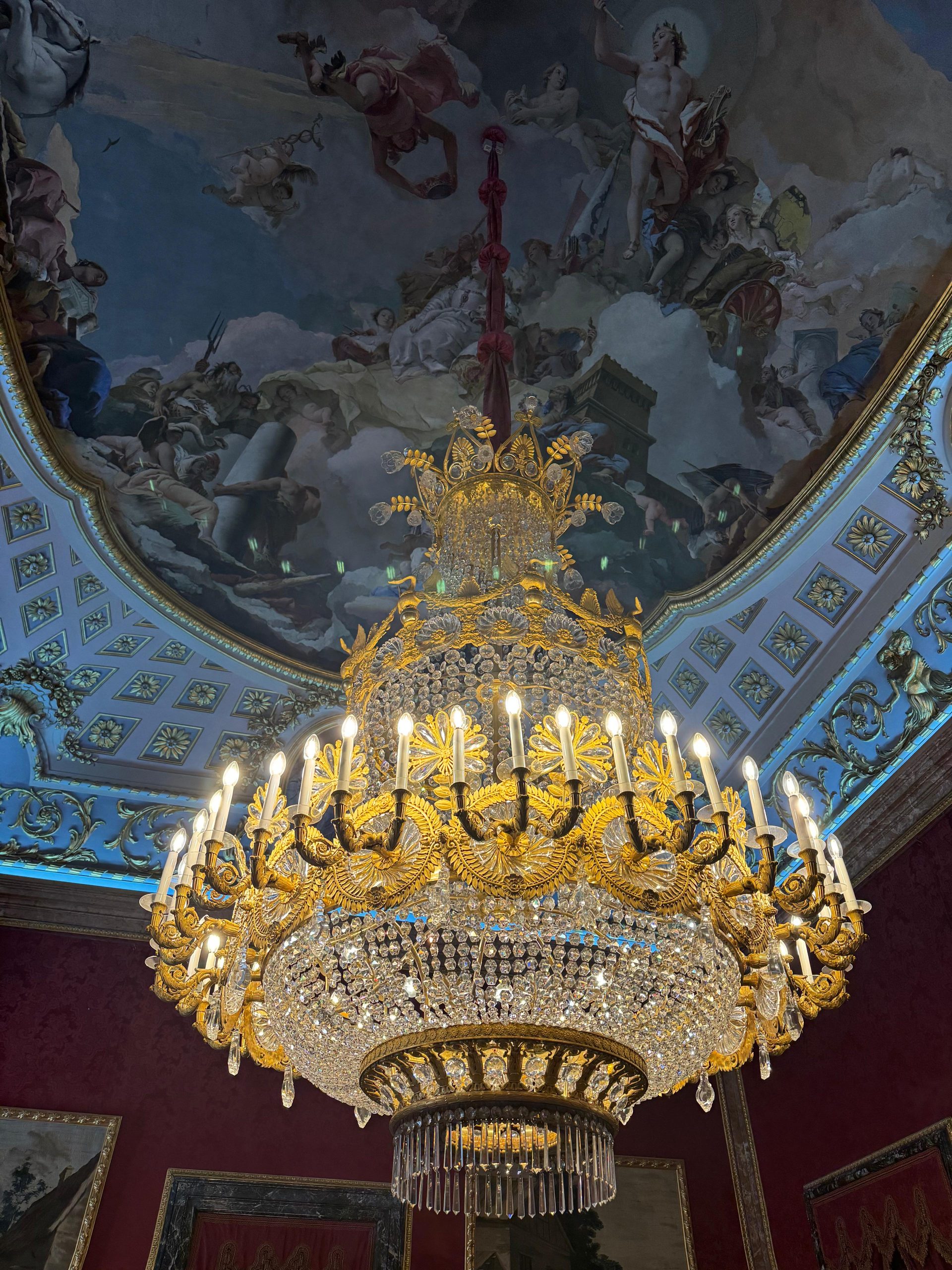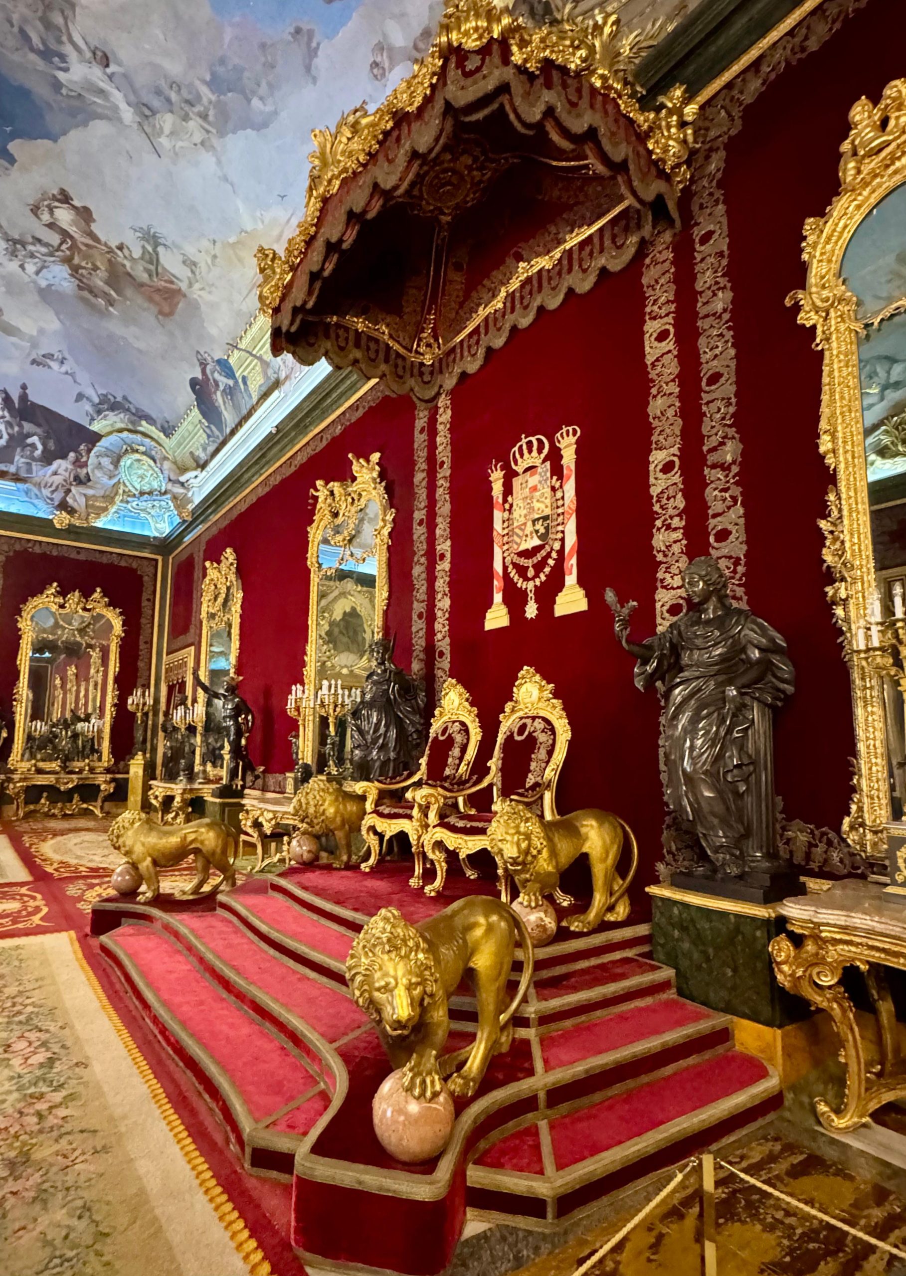 Trónna sála – žiarivá miestnosť s červeným brokátom, zrkadlami, freskami a levmi strážiacimi trón – tu sa zastaví každý dych.
